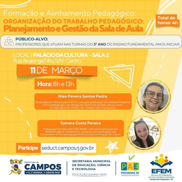 A Secretaria Municipal de Educação, Ciência e Tecnologia (Seduct) publicou nesta quarta (04) o edital 004/2026 que lança o II Festival Curta Campos...