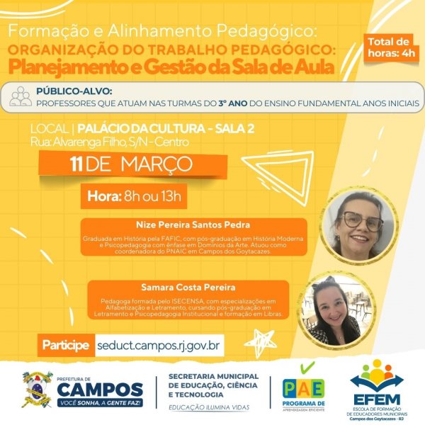 O Departamento de Gestão de Pessoas da Secretaria Municipal de Educação, Ciência e Tecnologia (Seduct) vai realizar, na próxima segunda-feir...